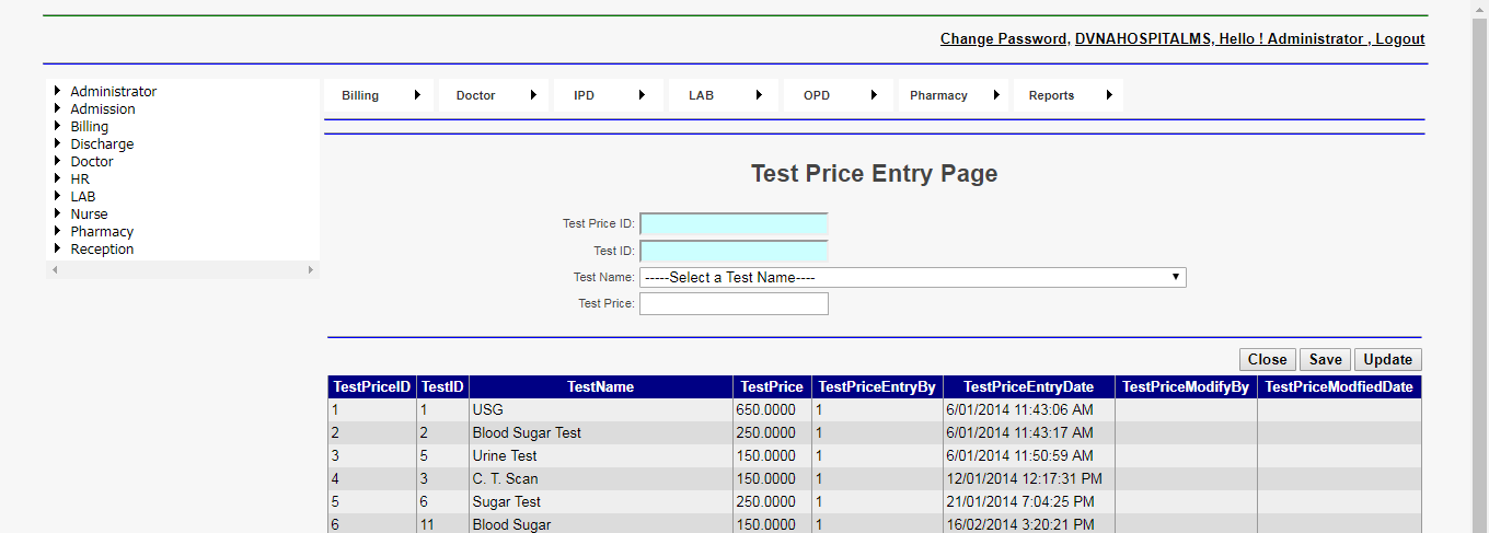 Bed Details,Bed Details,Bed Details Entry Page,Bed Type Page,Blood Bank Name Entry Page,Blood Group Entry Page,Commission Entry Page,Contents Entry Page,Department Page, Doctor Fee Page,